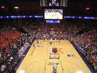 John Paul Jones Arena, or JPJ, is an arena owned by the University of Virginia in Charlottesville, Virginia.[5] Since its opening in 2006, it has served as the home to the Virginia Cavaliers men's and women's basketball teams, as well as for concerts and other events. With seating for 14,593 fans (nearly twice the capacity of its predecessor, University Hall), John Paul Jones Arena is the largest indoor arena in Virginia. The arena opened for basketball on November 12, 2006, with Virginia defeating #10 ranked Arizona 93-90, handing the Wildcats their first season-opening loss in over six years.[6]