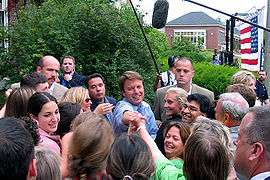 On July 6, 2004, Kerry announced that Edwards would be his running mate; the decision was widely hailed in public opinion polls and by Democratic leaders. Though many Democrats supported Edwards' nomination, others criticized the selection for Edwards' perceived lack of experience. In the vice presidential debate, Dick Cheney told Edwards they had never met because of Edwards' frequent absences from the Senate, but that was later proven to be incorrect. Videotape later surfaced of Cheney and Edwards shaking hands off-camera during a taping of Meet the Press on April 8, 2001.[57] On February 1, 2001, Cheney thanked Edwards by name and sat with him during a Senate prayer breakfast. However, George W. Bush's campaign spokesman Steve Schmidt described the event as an "inconsequential meeting".[58][59] On January 8, 2003, they met when John Edwards accompanied then-Senator Elizabeth Dole to a mock swearing-in.[60]