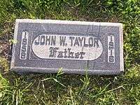 Taylor disputed with the Quorum of the Twelve often after his resignation. He was finally excommunicated on March 28, 1911 for continued opposition to the Second Manifesto.[4][5] However, he remained a believer in Mormonism up to his death. He died of stomach cancer at his home in Forest Dale, Salt Lake County, Utah, at age 58.[6] He was buried at Salt Lake City Cemetery.