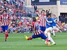 Giménez scored his first goal for the club on 6 December 2014, opening a 2–0 win away to Elche CF to move Atlético into second place.[5] He also scored a header against biggest rival Real Madrid in Atlético's 2–0 win in the Copa del Rey in January 2015.