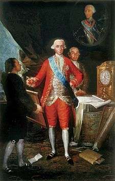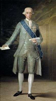 José Moñino y Redondo (es: José Moñino y Redondo, conde de Floridablanca) (October 21, 1728 – December 30, 1808) was a Spanish statesman. He was the reformist chief minister of King Charles III of Spain, and also served briefly under Charles IV. He was arguably Spain's most effective statesman in the eighteenth century. In Spain, he is simply known as Conde de Floridablanca.