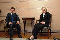 Santos announced on 27 August 2012 that the Colombian government has engaged in exploratory talks with FARC in order to seek an end to the conflict.[34][35] He also said that he would learn from the mistakes of previous leaders, who failed to secure a lasting ceasefire with FARC, though the military would still continue operations throughout Colombia while talks continued.[34] According to an unnamed Colombian intelligence source, Santos would have offered FARC assurances that no one would be extradited to stand trial in another country.[36] The move has been viewed as a cornerstone of Santos' presidency. Former President Uribe has criticised Santos for seeking peace "at any costs" in contrast to his predecessor's rejection of talks.[37]