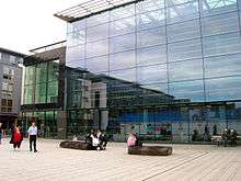 The Jubilee Square development as a whole has been praised for linking two important historic parts of the city centre—the North Laine and the Royal Pavilion grounds—which had previously been isolated from each other by the "desolate space" of temporary car parks and wasteland.[5][31] The reopened Jubilee Street forms a direct link from Church Street, an ancient route to the Pavilion estate, and North Road—the main road through the North Laine district of cultural venues, restaurants and small shops.[12] As such, the library and square form a central part of Brighton's "cultural quarter".[19] As the central feature of Jubilee Square, and the first to be completed, the library was described by Hugh Pearman as the "catalyst for regeneration". The library's opening and success encouraged commercial development round it, which in turn helped to pay for it through the 25-year private finance scheme set up in 2000. Pearman stated that "the library became the superhero. The city did not save it: it saved the city."[5] Assessing its impact in 2010, another writer suggested it could be "the most important public building constructed in Brighton since the Royal Pavilion".[4]