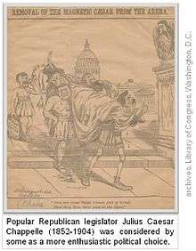 - 1 2 "Had Long Been Ill: Death of Ex-Representative Julius Caesar Chappelle, A Negro Well Known in Republican Politics." Boston Daily Globe, page 7, January 28, 1904.