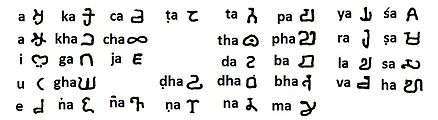 - ↑ "South Asian Writing Systems Comparison". Ancient Scripts. Retrieved 2014-03-13.