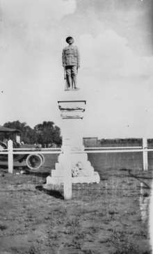 The Kaimkillenbun war memorial was unveiled on 13 November 1920 by William Vowles, the member of the Queensland Legislative Assembly for Dalby and Leader of the Opposition. The "digger" statue was made by R C Ziegler, a Toowoomba stonemason.[14] Originally placed near the Kaimkillenbun railway station, the memorial was damaged in a traffic accident. A replacement from the original plans was commissioned from the Zieglers and was placed in a park behind the hotel (corner of Isabelle and Delacey Streets).[15][16]