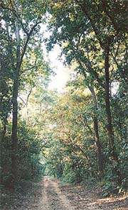 Besides the tall, leafy sal trees that constitute the dense age-old forest belt of the Doon valley, there are other trees like Semul, Amaltas and Bahera. Climbers snake up the tree stems, and the forest floor is littered with fallen leaves and foliage plants. Sculptural anthills dot the landscape. There is a watering hole created by the Forest Department to quench the thirst of wild animals. A number of pebbled dry rivulets, which come alive during the monsoon season. A vast stretch of forest clearing is in sight. It is a man-made clearing and a 'fire line' which helps in the intricate task of containing forest fires, which once if they start off can turn into an inferno.