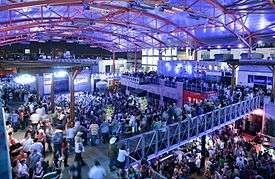 The interior of the Kansas City Live! block of the Power & Light District, featuring the Kansas City Live! stage.