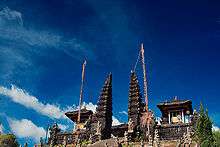 Karangasem Regency (Indonesian: Kabupaten Karangasem) is a regency (kabupaten) of Bali, Indonesia. It covers the east part of Bali, has an area of 839.54 km2 and a population of 369,320 (2002). Its regency seat is Amlapura. Karangasem was devastated when Mount Agung erupted in 1963, killing 1,900 people. Karangasem was a kingdom before Bali was conquered by the Dutch.