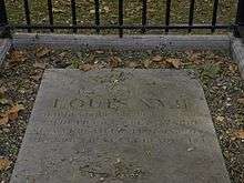 Naundorff died on August 10, 1845 in Delft, the Netherlands, possibly of poisoning. He had been living there with his family after being made Director of Pyrotechnics for the Dutch Military. He still had some supporters because the epitaph on his grave reads "Here lies Louis XVII, King of France" and in his death certificate he is named as "Charles-Louis de Bourbon, Duke of Normandy (Louis XVII), who was known under the name of Charles-Guillaume Naundorff, [...] son of His Majesty the late Louis XVI, King of France and of Her Imperial and Royal Highness Marie Antoinette, Archduchess of Austria, Queen of France, who both died in Paris".[1] France has insisted this document be set aside but the Netherlands has refused.