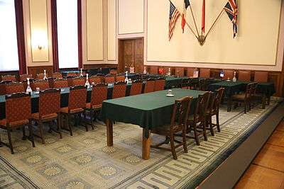 Original table and chairs as set up for the second signing of the Unconditional Surrender of the Germans