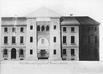 The 1798 Karlsruhe Synagogue is an early building by the influential architect Friedrich Weinbrenner in the city of Karlsruhe. According to David Brownlee, this "synagogue was the first large Egyptian building to be erected since antiquity."[1] According to Diana Muir Appelbaum, it was "the first public building (that is, not a folly, stage set, or funeral monument) in the Egyptian revival style."[2] Appelbaum writes that the pair of tall pylons are copied from the temple at Karnak.
