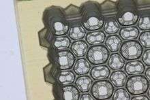 - ↑ Gabbrielli, R.; Meagher, A.J.; Weaire, D.; Brakke, K.A.; Hutzler, S. (2012), "An experimental realization of the Weaire-Phelan structure in monodisperse liquid foam", Phil. Mag. Lett., doi:10.1080/09500839.2011.645898.