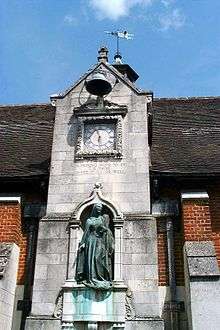 Kemsing was the birthplace, in AD961, of Saint Edith of Wilton, an illegitimate daughter of the Saxon King Edgar I. The well at the centre of the village is dedicated to her, a plaque on the wall recording the local legend that her saintly presence has given the water healing properties. The historic village centre area around the well includes the war memorial, a cluster of picturesque cottages and St. Edith's Hall, the front of which is adorned with a statue of the saint and a clock which chimes the hours and bears the inscription: