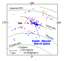 This is also the direction of the Solar System's motion around the center of the galaxy. Thus, the stars which Kepler observed are roughly the same distance from the galactic center as the Solar System, and also close to the galactic plane. This fact is important if position in the galaxy is related to habitability, as suggested by the Rare Earth hypothesis.