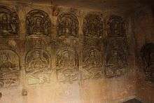 Navamuni Gumpha is a roughly cut cell with the sculptures of nine Jain Tirthankaras and Sasana Devis.
