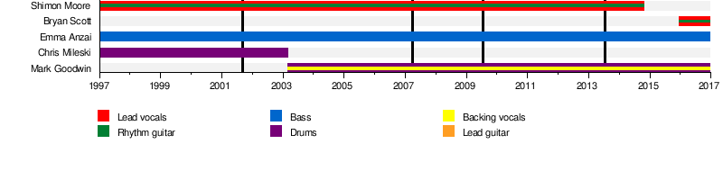- Mark Goodwin - drums, percussion, backing vocals (2003–present)