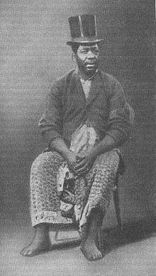 Douala was a dependable if minor source of slaves for the Atlantic Slave Trade.[4] The British became active in suppressing the trade in the 1820s. In November 1829 the British ship "Eden" seized the Brazilian slave trader "Ismenia" of Rio de Janeiro after it had given its trade goods to the then King Bell for the purpose of obtaining slaves.[5] On 7 March 1841, King Bell's predecessor signed a formal treaty with William Simpson Blount, commanding the British ship Pluto, in which he agreed to suppress the sale or transport of slaves in his territory.[6]