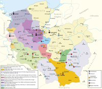 ![]() Widest span of the Kingdom of Poland before the Polish-Lithuanian Commonwealth, during the years of conquest in 1002-1005. | ||||||||||