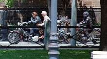 While shooting War of the Worlds in late 2004, Spielberg met with stunt coordinator Vic Armstrong, who doubled for Ford in the previous films, to discuss three action sequences he had envisioned.[58] However, Armstrong was filming The Mummy: Tomb of the Dragon Emperor during shooting of Kingdom of the Crystal Skull, so Dan Bradley was hired instead.[59] Bradley and Spielberg used previsualization for all the action scenes, except the motorcycle chase at Marshall College, because that idea was conceived after the animators had left. Bradley drew traditional storyboards instead, and was given free rein to create dramatic moments, just as Raiders of the Lost Ark second unit director Michael D. Moore did when filming the truck chase.[14] Spielberg improvised on set, changing the location of Mutt and Spalko's duel from the ground to on top of vehicles.[4]