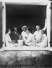 In 1921 Balmont moved out of Paris into the province where he and his family rented houses, mostly in Brittany, Vendee, Bordeaux and Gironde.[4] In the late 1920s his criticism of both the Soviet Russia and the leftist Western elite (Romain Rolland in particular) who were indifferent, as he saw it, to the plight of the Russian people, became more pronounced. Great Britain's acknowledgement of the legitimacy of (in Balmont's words) "the international gang of bandits who seized power in Moscow and Saint Petersburg" rendered "a fatal blow to the last remnants of honesty in the post-War Europe."[36] Still, unlike his conservative friend Ivan Shmelyov, Balmont was a liberal: he detested fascism and right-wing nationalist ideas. All the while, he shied the Russian Socialists (like Alexander Kerensky and Ilya Fondaminsky) and expressed horror at what he saw as France's general 'enchantment' with Socialism. His views in many ways were similar to those of Ivan Bunin; the two (who rather disliked each other personally) were speaking in one voice on many occasions.[37]