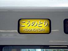The Kounotori (こうのとり Kōnotori) is a limited express train service operated by the West Japan Railway Company (JR West) between Shin-Osaka and Kinosaki Onsen in Japan since 12 March 2011. It replaced the previous Kitakinki services.[1]