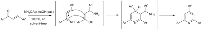 The Kröhnke method is featured in a solvent-free synthesis of triarylpyridines that proceeds via a homo-coupling of two diaryl substituted α, β-unsaturated carbonyl compounds.[12] This strategy offers a facile means for preparation of pyridnyl aryl systems that are important fragments of many useful drug scaffolds.
