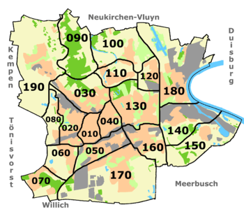 There are a number of districts in Krefeld. Each has a municipal representative, with representatives chosen by local elections. The districts are: