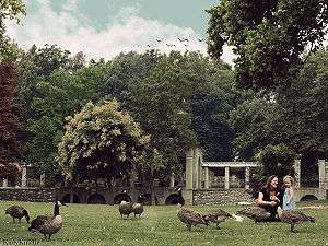Krug Park, located at the northern end of the Parkway St. Joseph in Saint Joseph, Missouri, is a large city park with Italian Renaissance structures, extensive landscaping and flowerbeds. The park's 163 acres (0.66 km2) house an amphitheater, a lagoon, rose gardens, picnic areas, an Italian castle, scenic walking trails, and various playgrounds.[1] Also featured is a North American native animal exhibit housing buffalo, deer, and longhorn cattle. Krug Park "lights up" during the holiday season as Holiday Park.