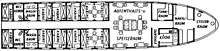 Behind the operational spaces were the main dining and sitting room with four large windows which connected via a long corridor to ten passenger cabins capable of sleeping 24, a pair of washrooms, and dual toilet facilities.[6] The passenger cabins were set by day with a sofa which converted to two beds, one above the other, at night.[7] The crew's quarters were located inside the hull and were reached by a catwalk. The galley was equipped with a single electric oven with two compartments and hot plates on top for cooking.[7] One luxury that was not provided on the Graf Zeppelin was heating.[8][9][10]
