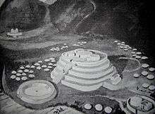 The Lithic Period was followed by what archaeologists have called the Pre-Ceramic Period, or alternatively the Late Archaic Period, and is characterised by increasing societal complexity, rising population levels and the construction of monumental ceremonial centres across the Andean region.[3] It is the latter of these features that remains the most visually obvious characteristic of the Pre-Ceramic amongst archaeologists, and indicates that by this time, Andean society was sufficiently developed that it could organise large building projects involving the management of labor.[4] The Pre-Ceramic Period also saw a rise in the population of the Andean region, with the possibility that many people were partially migratory, spending much of their year in rural areas but moving to the monumental ceremonial centers for certain times which were seen as having special significance.[5] The Pre-Ceramic also saw climate change occurring in the Andean region, for the culmination of the Ice Age had led to an end of the glacial meltback which had been occurring throughout the Lithic Period, and as a result the sea levels on the west coast of South America stabilized.[3]
