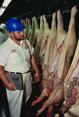 The Occupational Safety and Health Administration regulates the labor rights of workers in the American meat packing industry.[1][2] According to scholars of the American meat packing industry, despite federal regulation through OSHA and industry oversight, workers in meat production plants have little agency and inadequate protections.[1][2] Workers in the industry perform difficult jobs in dangerous conditions, and are at significant risk for physical and psychological harm.[1][2][3] In addition to high rates of injury, workers are at risk of losing their jobs when they are injured or for attempting to organize and bargain collectively.[2] Several of studies of the industry have found immigrant workers - "an increasing percentage of the workforce in the industry"[2] - especially at risk of not having their labor rights sufficiently protected.[1][2]