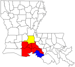 The Lafayette–Opelousas–Morgan City combined statistical area is made up of six parishes in the Acadiana region of southern Louisiana. The statistical area consists of the Lafayette Metropolitan Statistical Area (MSA)[1] and two micropolitical statistical areas (μSAs)[2] – Opelousas, Louisiana Micropolitical Statistical Area and Morgan City, Louisiana Micropolitical Statistical Area. As of the 2010 census, the CSA had a population of 604,784 (though a 2015 estimate placed the population at 627,146).[3]