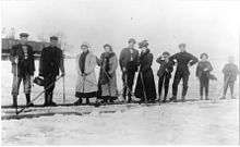 Shanly surveyed the line in 1875,[1] but construction was delayed by the lack of a final agreement with the T&N. Construction began in early 1877 with grading all the way to Sutton, and the first rail was laid at Stouffville on 18 June 1877. The line was built from 40-pound rail imported from England. The bush cut for the line was stacked and burned, heating nearby rails to the point that the crews would roast crows on them for food.[1] The line was completed and opened for business on 1 October 1877.[1]