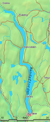- Fjord: Although normally used to describe a saltwater inlet, in eastern Norway a long, narrow fresh water lake is also called a fjord (though this differs from the English use of the word: see fjord). Randsfjorden, mapped on the left, is the largest example of an inland fjord.