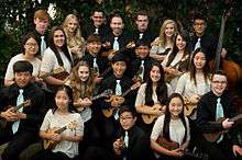 The Langley Ukulele Ensemble is a ukulele ensemble from Langley, British Columbia in Canada. They are currently celebrating their 35th Year Anniversary. The ensemble is internationally renown and considered to be one of the top ukulele performing ensembles in the world. They were prominently featured in the 2008 Award-winning document film, The Mighty Uke.[1][2] The group is composed of 20 musicians, aged twelve to eighteen years, and performs 50-80 concerts a year. The group originated with the J. Chalmers Doane's musical program in the 1970s that had over 50,000 students across Canada and the United States.[3] They have performed in Canada, Florida, Texas, California, Nevada, the Pacific Northwest, Japan and Hawaii. The ensemble was named Langley's Entertainer of the Year for 2005, and their musical director was named Langley's Leader of the Year for the same year.[4]