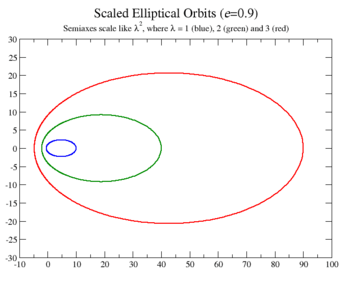 The direction of A is preserved as well, since the semiaxes are not altered by a global scaling. This transformation also preserves Kepler's third law, namely, that the semiaxis a and the period T form a constant T2/a3.