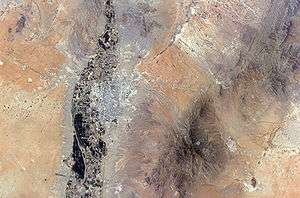 The Rio Grande bisects the Mesilla Valley and passes west of Las Cruces proper, supplying irrigation water for the intensive agriculture surrounding the city.[9] However, the Rio Grande fills its banks only when water is released from upstream dams, which is seldom, due to continuing drought.[10]