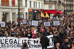 - ↑ (French) "340,000 to 800,000 protest gay marriage in Paris". Le Monde. January 14, 2013.