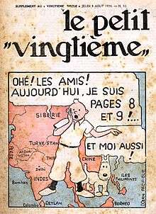 Le Petit Vingtième ("The Little Twentieth") was the weekly youth supplement to the Belgian newspaper Le Vingtième Siècle ("The Twentieth Century") from 1928 to 1940. The comics series The Adventures of Tintin first appeared in its pages.