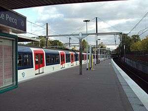 Le Vésinet - Le Pecq is a railway station in Le Vésinet, France, built in 1972, on the A1 branch of the Paris Region RER commuter rail line A. It primarily serves the communities of Le Vésinet, Le Pecq, and southern Montesson in the western suburbs of Paris.
