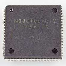 Microcontroller Intel N80C186XL12 in QFJ68 / PLCC68, an example of a plastic leaded chip carrier