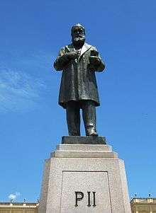 A law was proposed in the Chamber of Deputies to authorize the transfer of the bodies of Pedro II and his wife. Although it had support from old republicans, it was put aside due to a precondition from Princess Isabel that this could only be permitted if the banishment of her family was also rescinded.[17] The dedication of a statue of the Emperor in Petrópolis on 5 February 1911 was attended by more than 1,500 people, including members of the federal government.[18] Several statues of the monarch were erected throughout the country during the following years.[19] At this time, a manifesto written by former Presidents of the Council of Ministers, Lafayette, Ouro Preto and João Alfredo declared that "given the love that Brazilians have for their sovereigns, we agree to the return of the venerable remains back from São Vicente de Fora."[18]