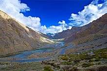 The Leh–Manali Highway (Hindi: लेह-मनाली राजमार्ग Lēh-manālī rājmārg) is a highway in northern India connecting Leh in Ladakh in Jammu and Kashmir state and Manali in Himachal Pradesh state. It is open for only about four and a half months in a year in summer between May or June, when the snow is cleared, and mid-October when snowfall again blocks the high passes. It connects Manali valley to Lahaul and Spiti valleys and Zanskar valley in Ladakh.