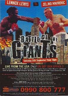 Lennox Lewis vs. Željko Mavrović, billed as "Battle of the Giants", was a professional boxing match contested on September 26, 1998 for the WBC and Lineal Heavyweight Championships.