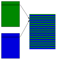 Lenticular printing is a multi-step process consisting of creating a lenticular image from at least two images, and combining it with a lenticular lens. This process can be used to create various frames of animation (for a motion effect), offsetting the various layers at different increments (for a 3D effect), or simply to show a set of alternate images which may appear to transform into each other. Once the various images are collected, they are flattened into individual, different frame files, and then digitally combined into a single final file in a process called interlacing.