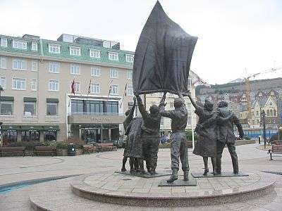 Brigadier Snow, accompanied by various dignitaries and with the band of the Duke of Cornwall's Light Infantry (DCLI) paraded through town, collecting a civilian following went to Elizabeth College at 14.00 where some 2,500 people witnessed the raising of the Union Flag and an official address including a message from the King, the Duke, was read out.[3]:171