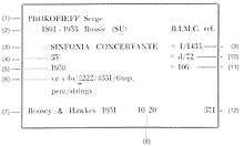 For each submitted work, an index card was established and printed numerously. To allow multiple filing of each index card, the database for each deposited score contained the following information: name and surname of the composer, year and country of birth as well as nationality, title of the work, duration, year of composition, instrumentation (nomenclature), possibly the publisher and the year of publication. Subsequently the data appeared in printed directories, and was eventually entered on the site of the Médiathèque Hector Berlioz. In addition, a biographical file is opened for each composer and made accessible. All information often not being specified in the scores, one of the major tasks of the association is to obtain all the data needed to establish an entry.