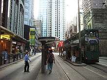 A tram stop, tram station, streetcar stop, or light rail station is a place designated for a tram, streetcar, or light rail vehicle to stop so passengers can board or alight it. Generally, tram stops share most characteristics of bus stops, but because trams operate on rails, they often include railway platforms, especially if stepless entries are provided for accessibility. However, trams may also be used with bus stop type flags and with mid-street pavements as platforms, in street running mode.