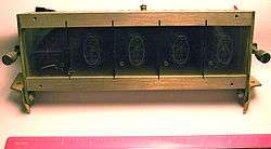 The principle of edge-lighting was discovered early and used for commercial signs. U.S. Patent 1,139,723 for an "Electric edge lit sign" was filed on July 31, 1914, and granted in 1915.[1] Other similar patents (1,707,965, 1,741,748, 2,082,724, 2,623,313) for illuminated signs were filed 1928-1948.[1] But the need for digit read-out arose with electronic computers in the 1950s with many independent inventions, both in edge-lighting, nixie tubes and other technologies.